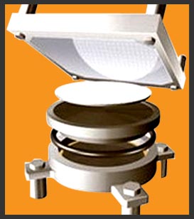 They are same in construction to the fixed bearings; these multi-directional devices are fitted with a virgin PTFE (Teflon) sheet in contact with the steel plate, enabling the bearing to slide in all directions.